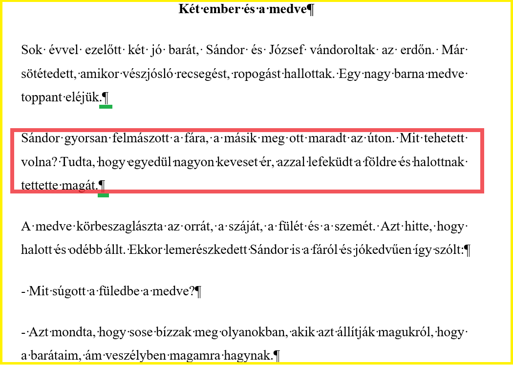 A dokumentumok karakternél nagyobb része a bekezdés.