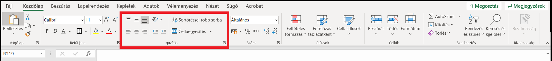 Cellák tartalmának szerkesztése: igazítás