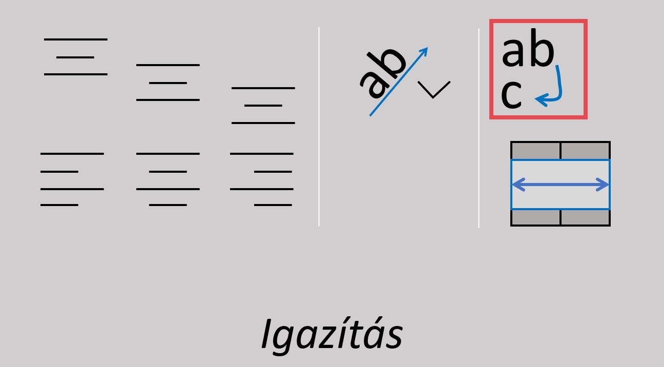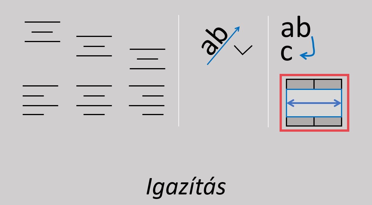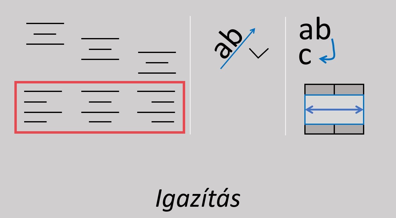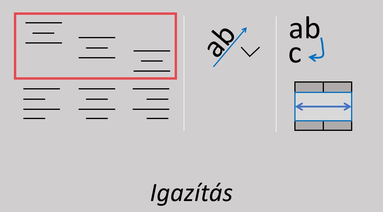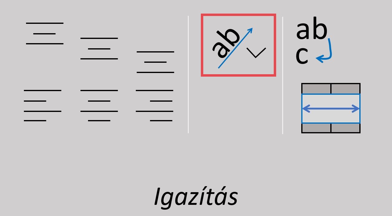 A cellákba beírt adatokat ide-odamozgathatjuk a cellán belül. Egyesével megmutatom nektek, melyik ikon mire való. Nézzétek meg figyelmesen!