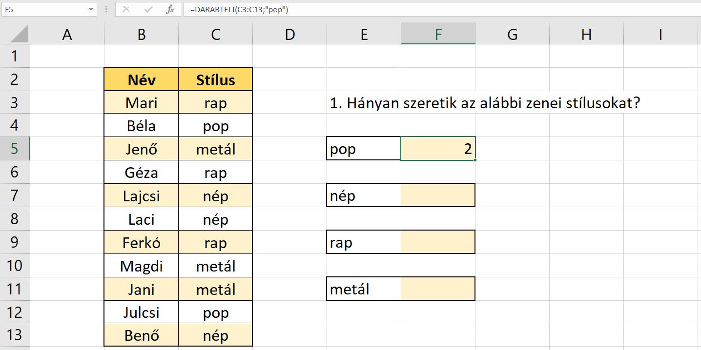 Feladata: összeszámolni egy cellatartományban hány adatra igaz az állításunk.