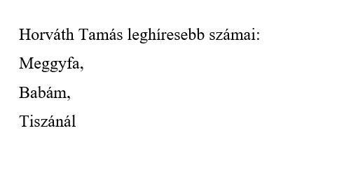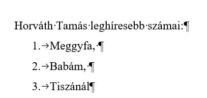 A szövegszerkesztő program lehetőséget ad arra, hogy a szövegből kiemelkedjenek a felsorolni kívánt dolgok. Nézzünk erre egy példát!