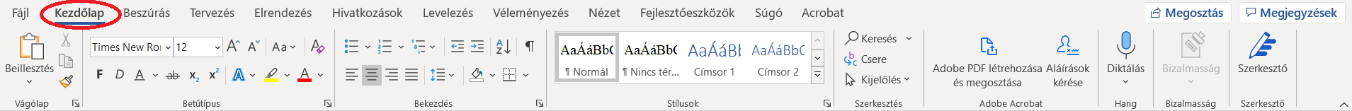 A Kezdőlap menüpont ikonjait már jól ismered.