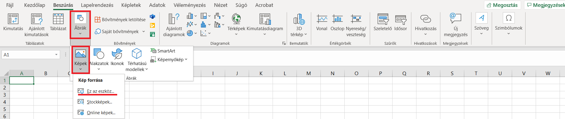 Majd kattints az Excelben a "Beszúrás" menüpontra és keresd meg az "Ábrák" gombot.