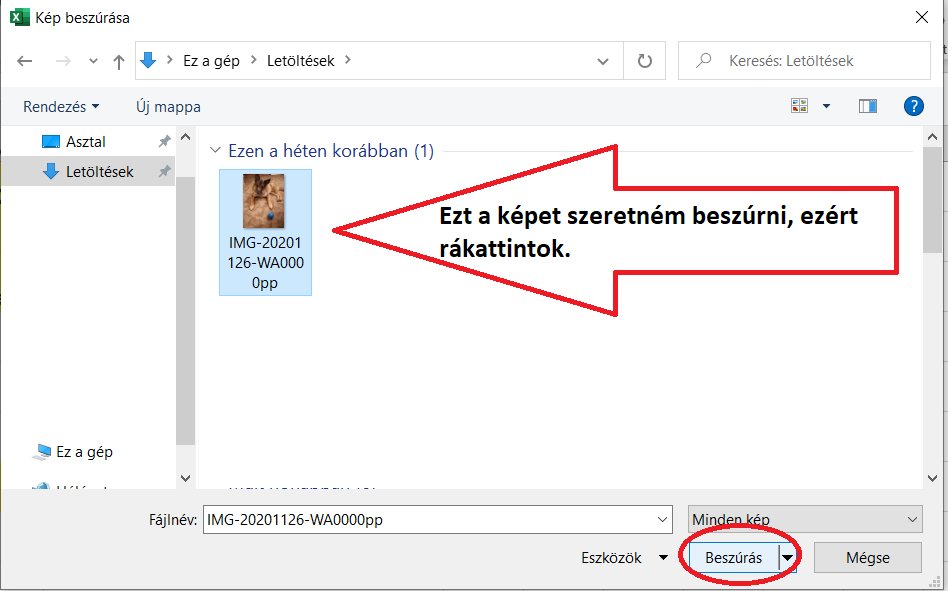 Végül keresd meg a képet, amit be szeretnél illeszteni és kattints a "Beszúrás" gombra.