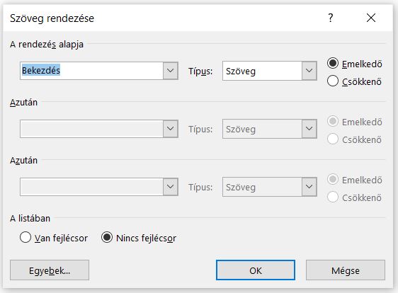 3. Rákattintunk a Rendezés ikonra.