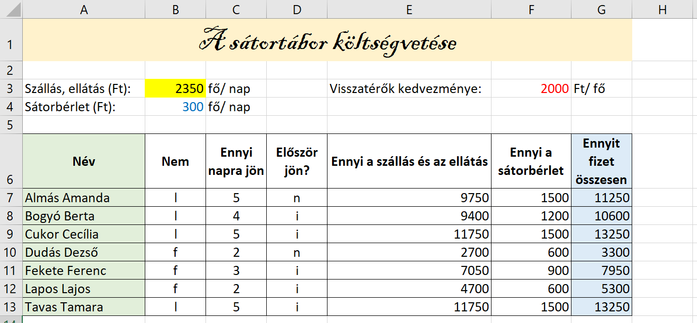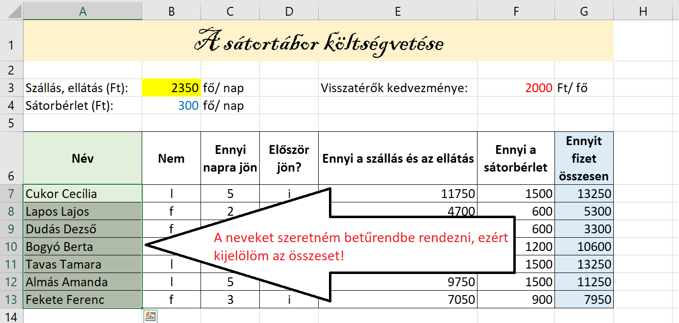 Hogy könnyebben átlássuk a táblázatba beírt adatokat, az Excel segít nekünk ezeket rendezni.