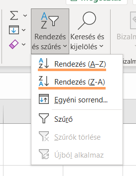 Kiválasztjuk, hogy növekvő (A-Z) vagy